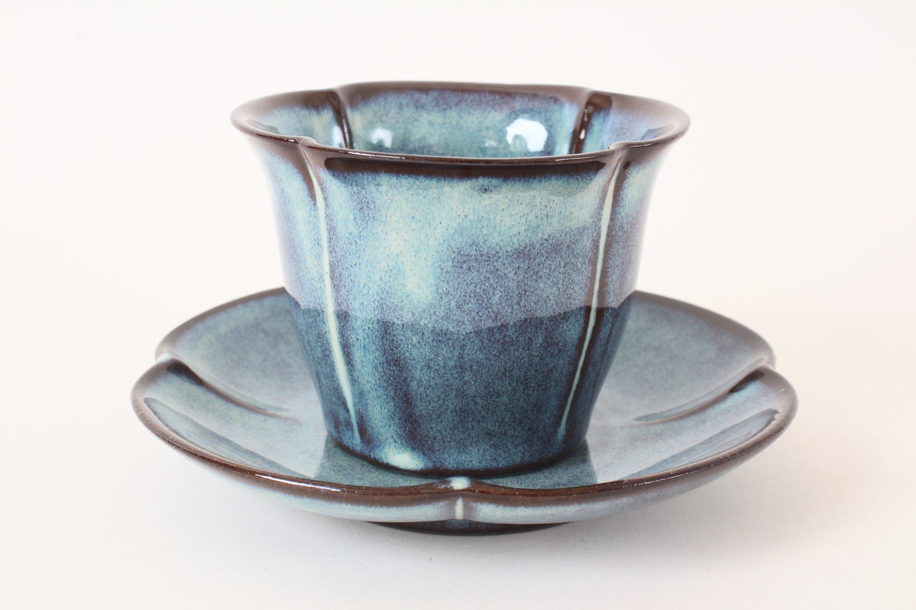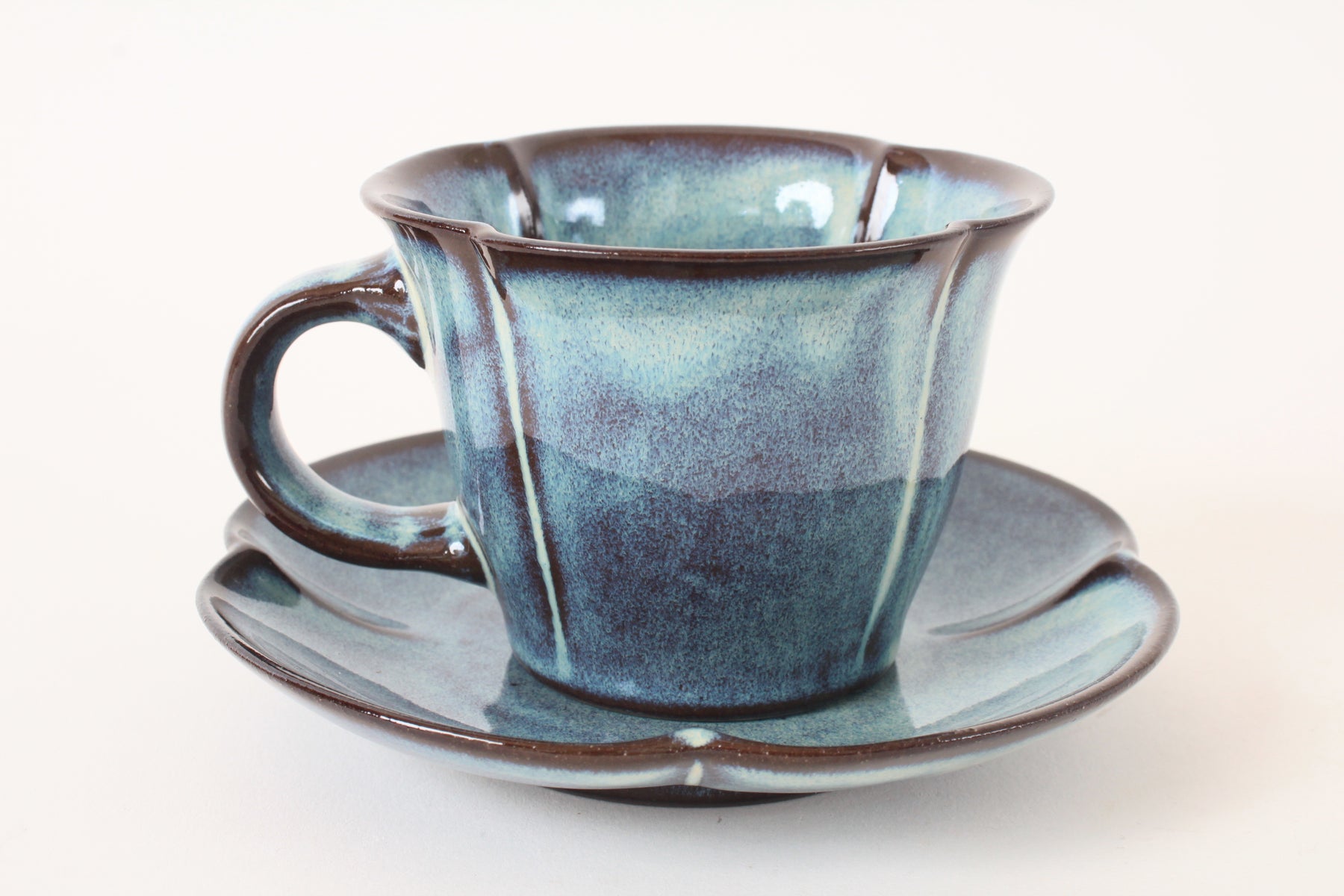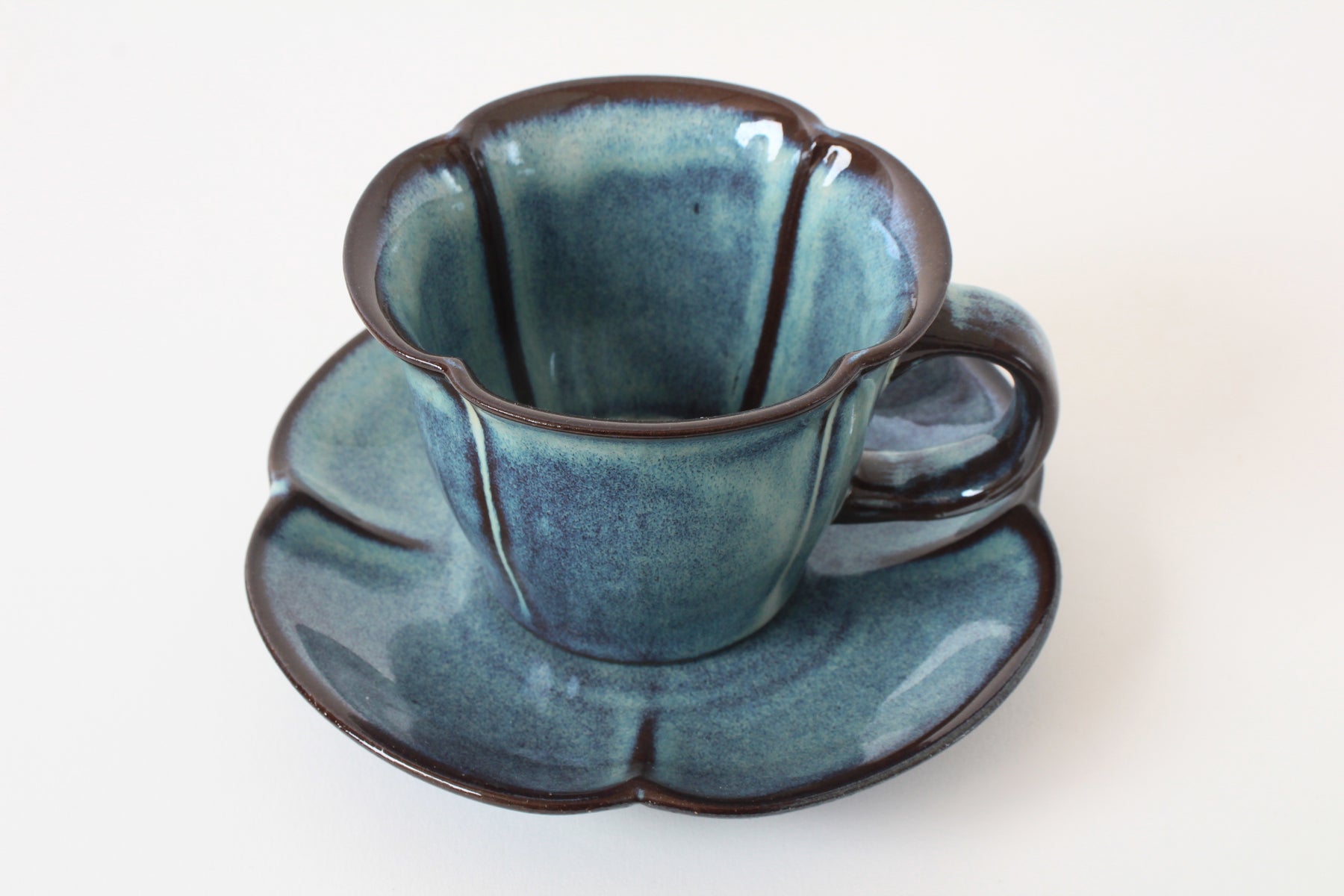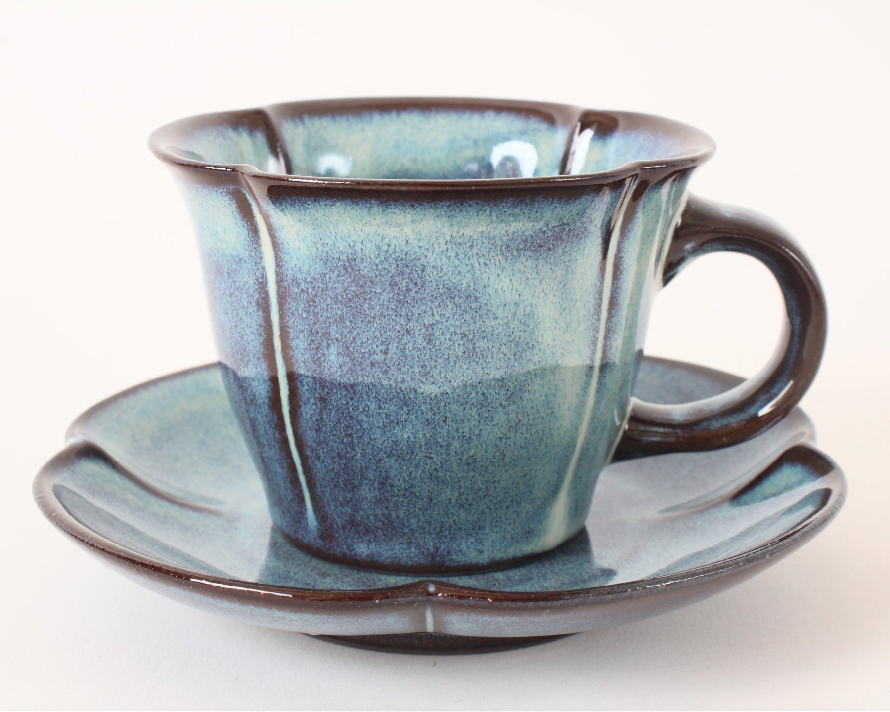 Mino Ware Japanese Pottery Coffee Cup and Saucer Cerulean Blue made in Japan