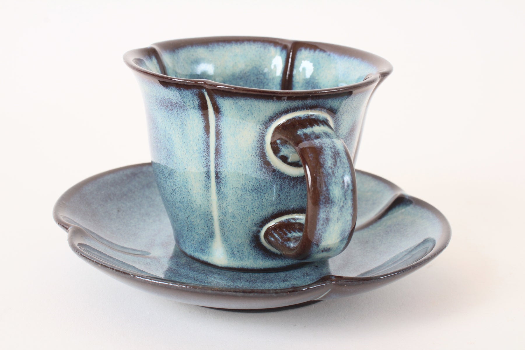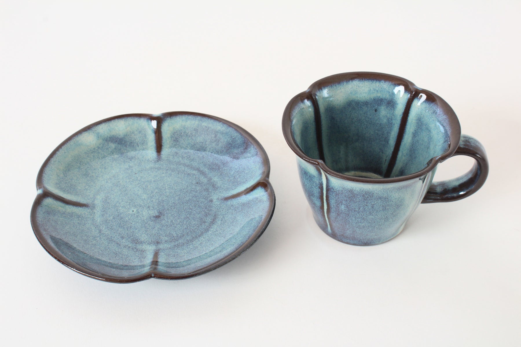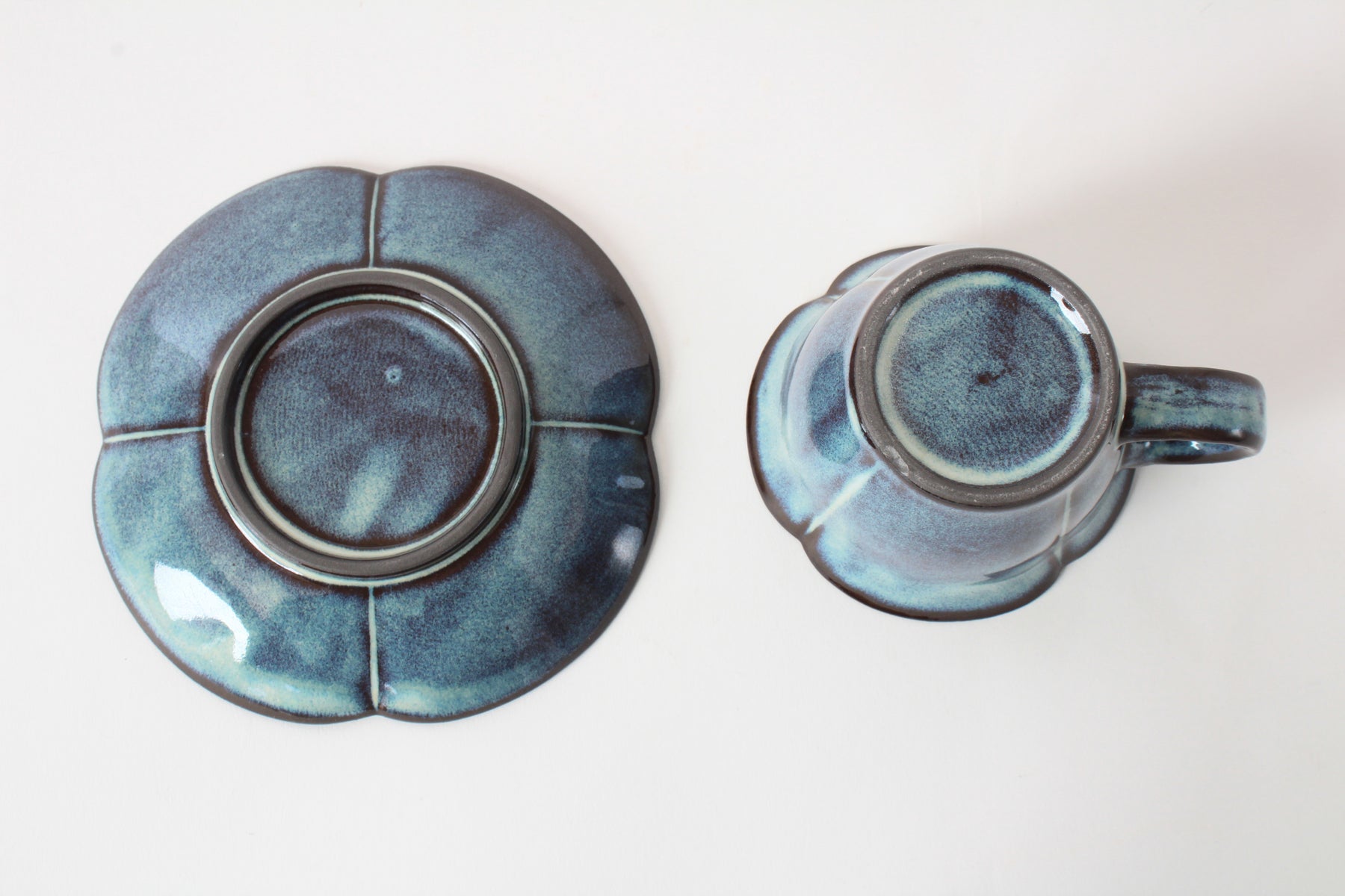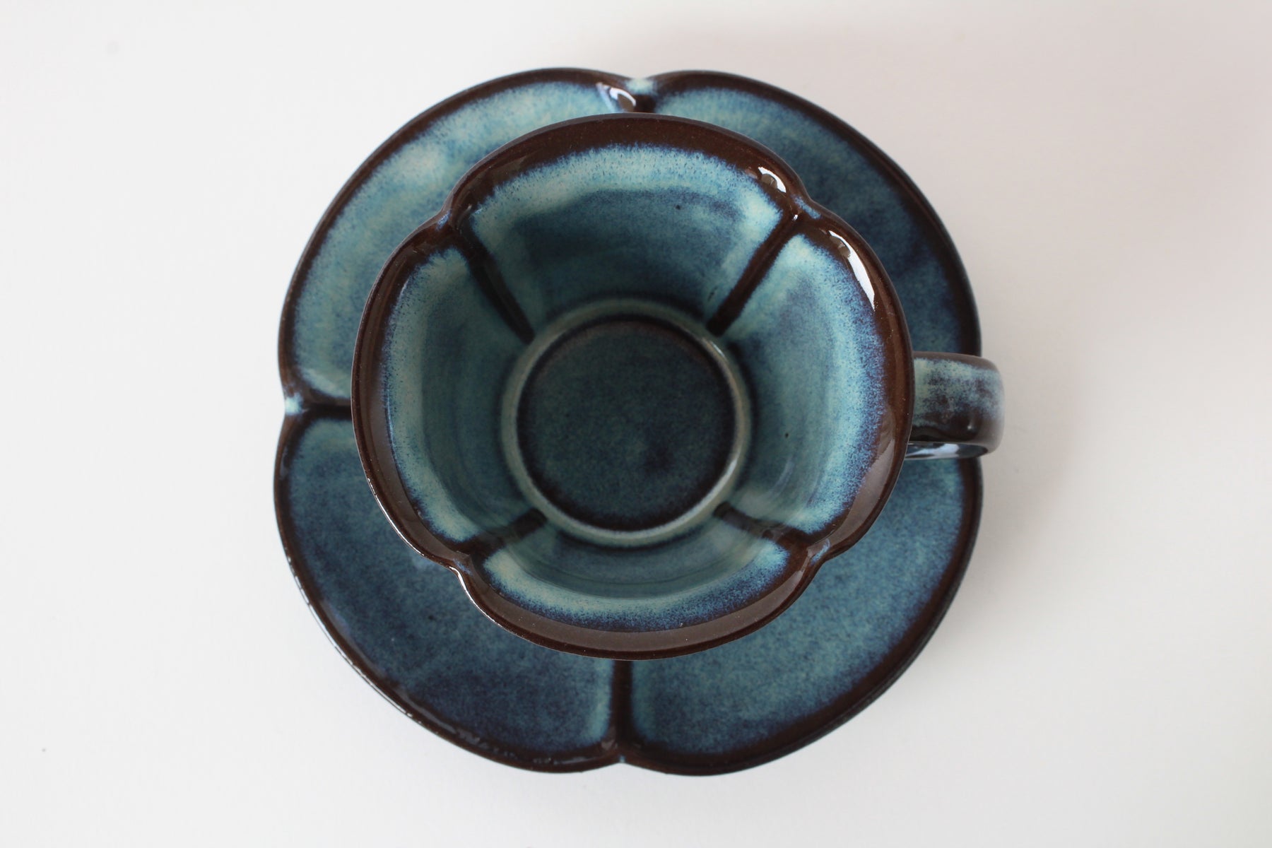 Mino Ware Japanese Pottery Coffee Cup and Saucer Cerulean Blue made in Japan